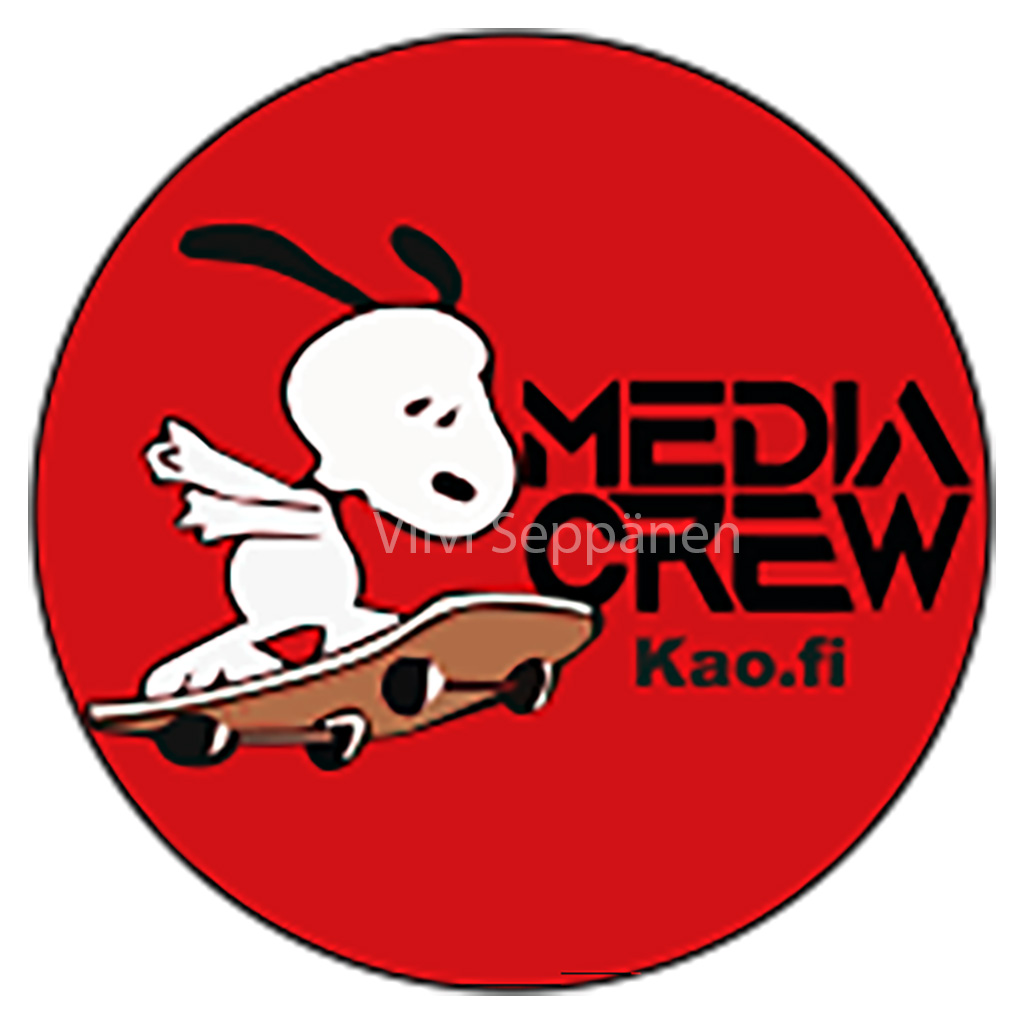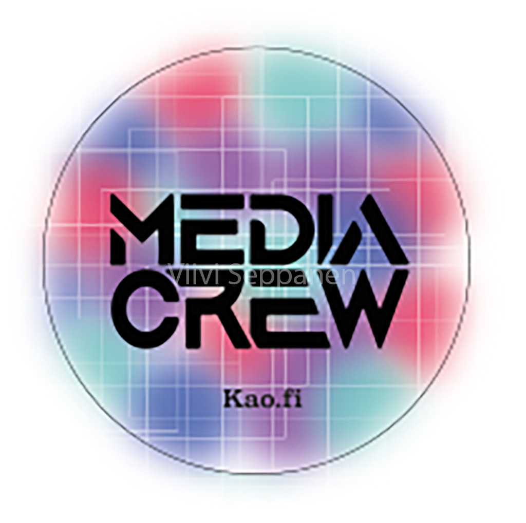 Tehtiin myös tänä lukuvuonna tarroja median markkinointiin. Päädyin tekemään 6 cm halkaisijaltaan olevia pyöreitä tarroja.