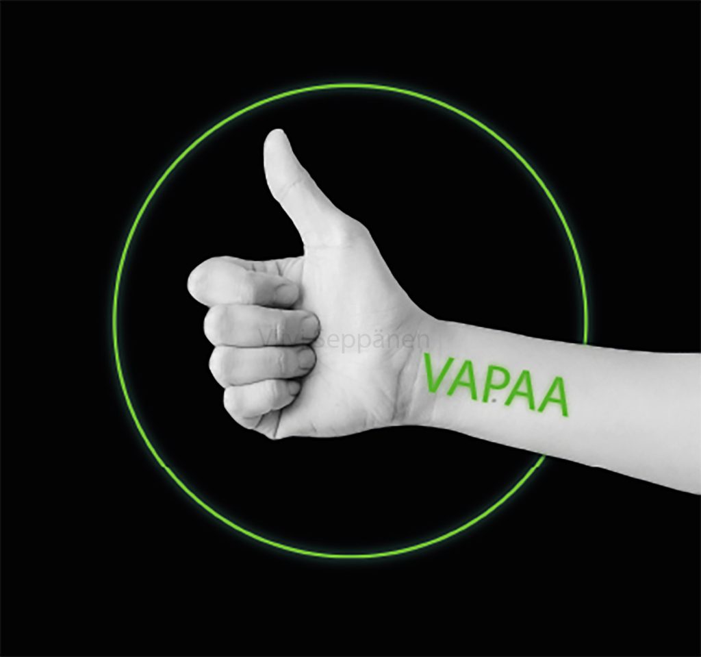 ”Vapaa” kyltti. Tehtävänä oli suunnitella ja toteuttaa median tiloihin kylttejä, joissa lukee ”vapaa”. Kyltit tulivat neuvotteluhuoneiden oviin, jolloin siitä näkee kun huone on vapaa. Minun suunnittelema tuli valituksi ja näkyy nyt median tiloissa.